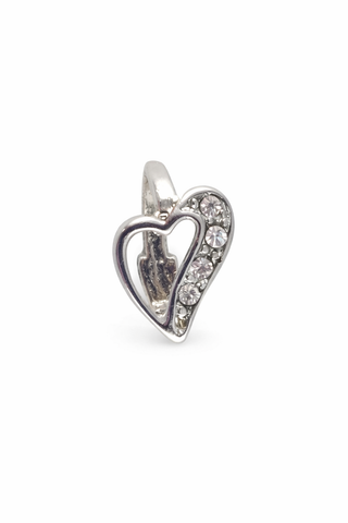 Jewelry Findings - Bails - Antique Silver Heart / Rhinestones Pinch Bail (Qty 5 or 10) Ships Free from WI (125-AS)