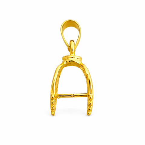 - Gold colored pinch bail made of brass.